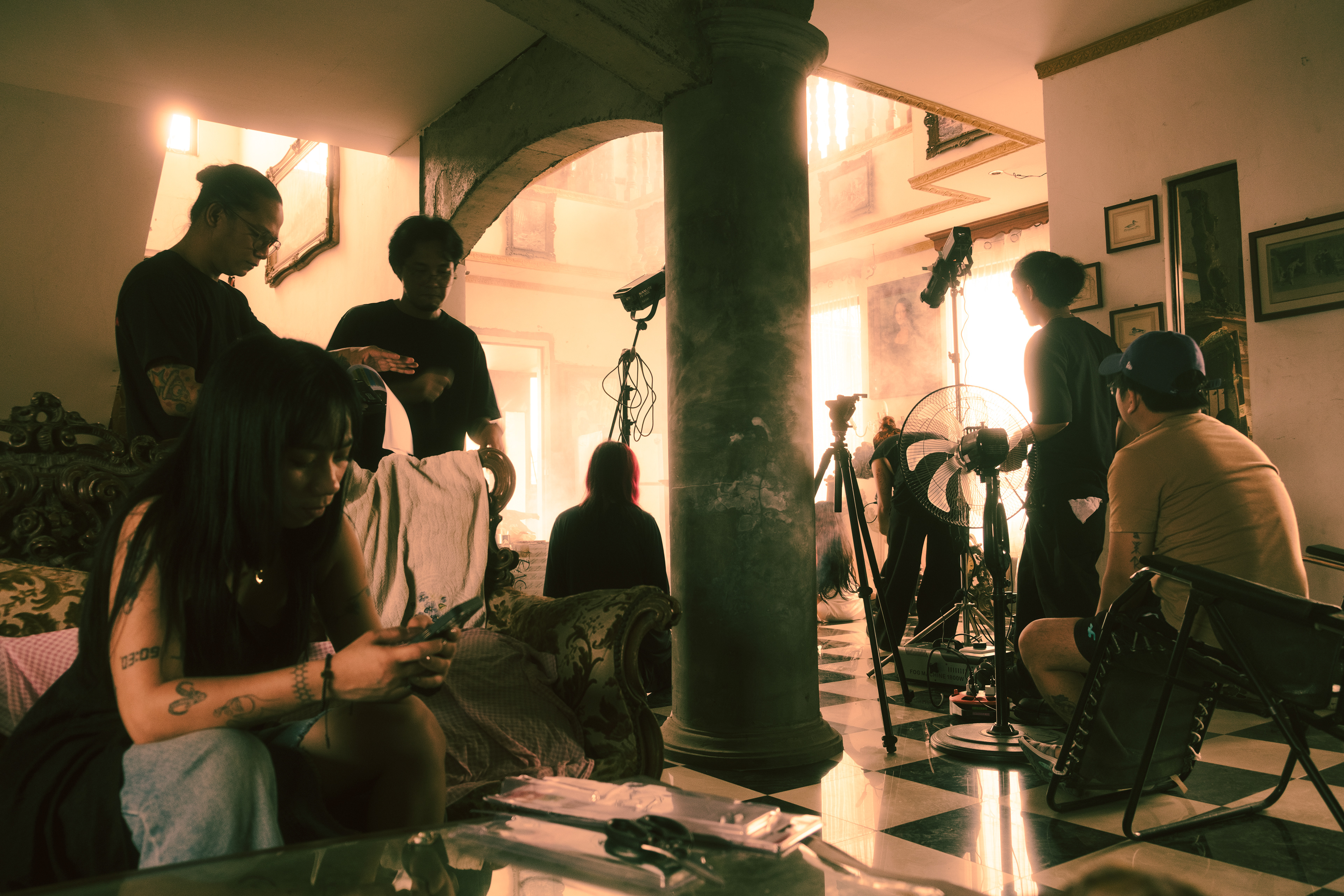 The two-day shoot took place in Laguna, inside an old house that perfectly matched the eerie, unsettling tone of the video. Lea Ancheta handled beauty and SFX makeup, while Geraldyn Cañete created intricate prosthetics for each band member. Together, they crafted ghostly and custom looks that enhanced the video’s horror aesthetic. Practical effects were produced by Persioux Crowley’s team, Multomedia, adding layers of gore and surrealism to the set.
